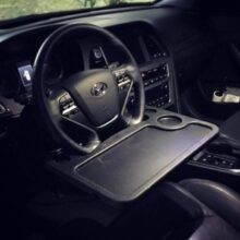 Measuring 11 inches across the steering wheel hold, our tray snugly fits the steering wheel of most modern cars. No balancing on your knees or anything. Whether you’re watching a movie to kill time or are finishing up a weekly report for work, our tray will support you until the end.
