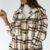 Casual Spring Plaid Long Blouse Women High Street Lantern Sleeves Shirt Pocket Button Ladies Outwear Shirts Loose 2021 Color: Auburn Size: S|M|L|XL|XXL
