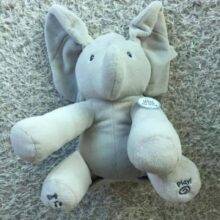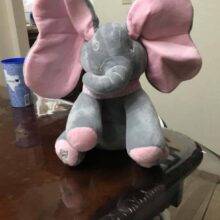 Your child’s new elephant friend has two fun functions: press the left foot to play an interactive game of peek-a-boo; press the right foot to hear the song “Do Your Ears Hang Low” in a cute child’s voice. During both play modes, the elephant’s ears move and flap, like the elephant has come to life: it’s sure to delight your little one.